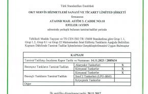 - Periyodik olarak her yıl gerçekleştirilen Araç ADR Uygunluk (T9) Muayenesi, ile ayrıca Tehlikeli Madde Taşıyan Eski Araç ve Üst Yapıların Muayene ve Belgelendirilmeleri Hakkında Yönerge kapsamında;